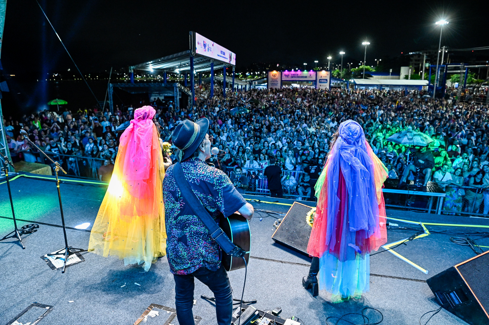 "Esse clima de praia é o nosso clima, a gente nasceu na praia. É um prazer estar em Vitória mais uma vez, a cidade já faz parte do nosso circuito histórico. E fazer um show na praia é demais, mesmo com chuva", contou.