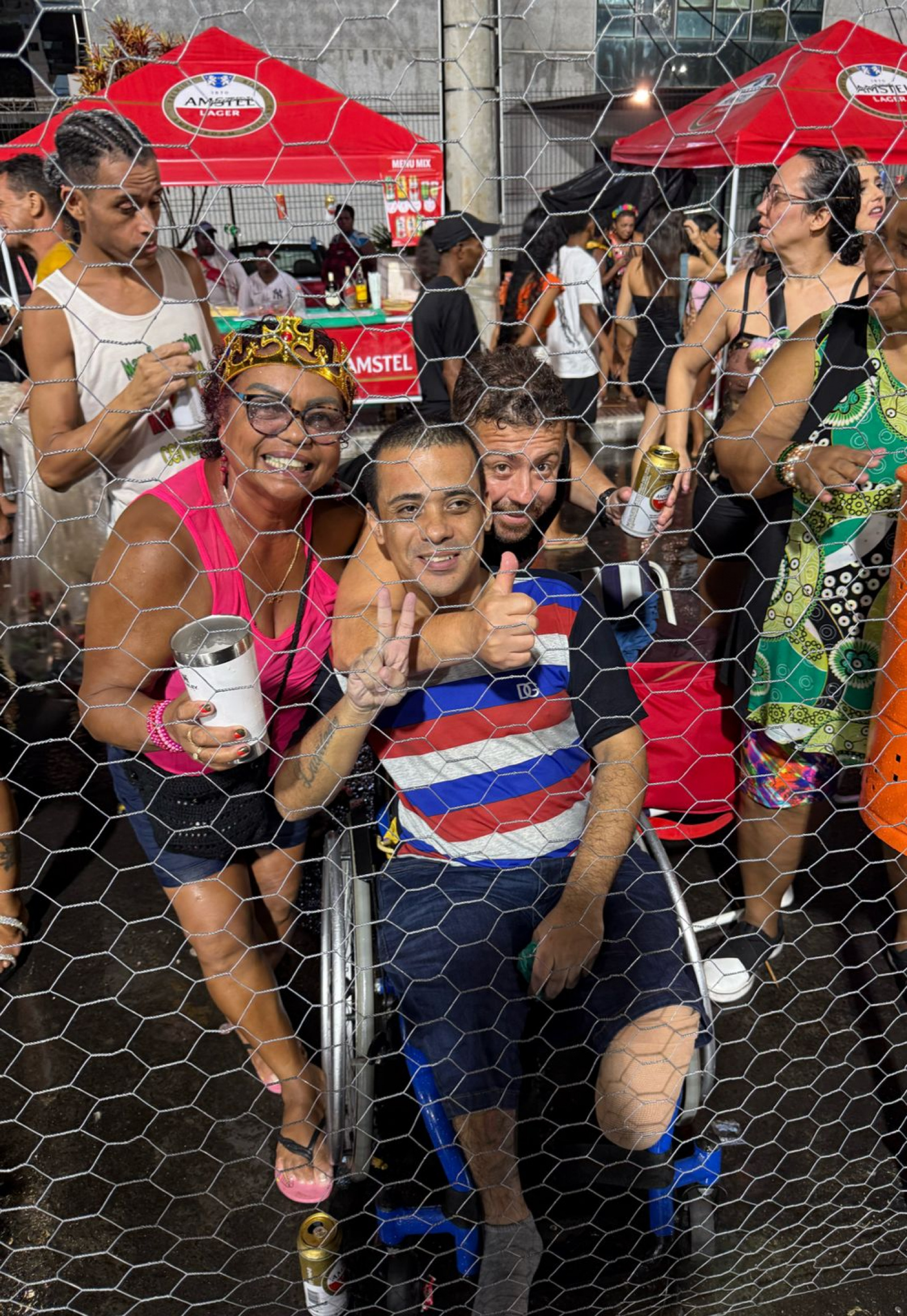 Nem a chuva e nem mesmo não ter conseguido ingresso foram empecilhos para Catia Sarmento, que foi com a amiga e o filho Jhony Ribeiro Andrade curtir a concentração dos desfiles da grade.