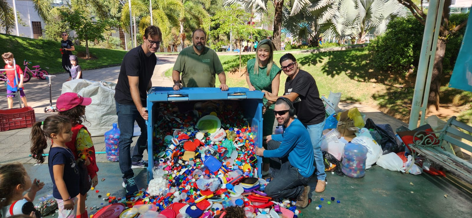 A manhã desta segunda-feira (05), inclusive, contou com a entrega de recolhimento de tampinhas e lacres de alumínio no parque. Muitas pessoas se juntaram a causa e foram levar o que haviam conseguido juntar.