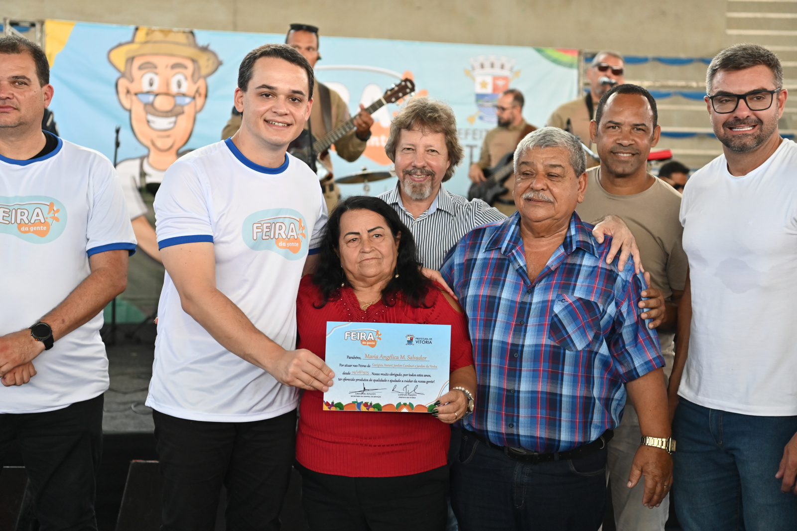 "É uma alegria e satisfação muito grande estarmos aqui hoje, pois foi com o trabalho nas feiras que pudemos criar nossos filhos e constituir nossas famílias. Obrigado à prefeitura de Vitória, ao secretário Léo Formigão e ao prefeito Lorenzo Pazolini por acreditarem a apoiarem nosso trabalho", disse dona Maria Angélica, que há meio século trabalha como feirante ao lado do esposo, Moacyr.