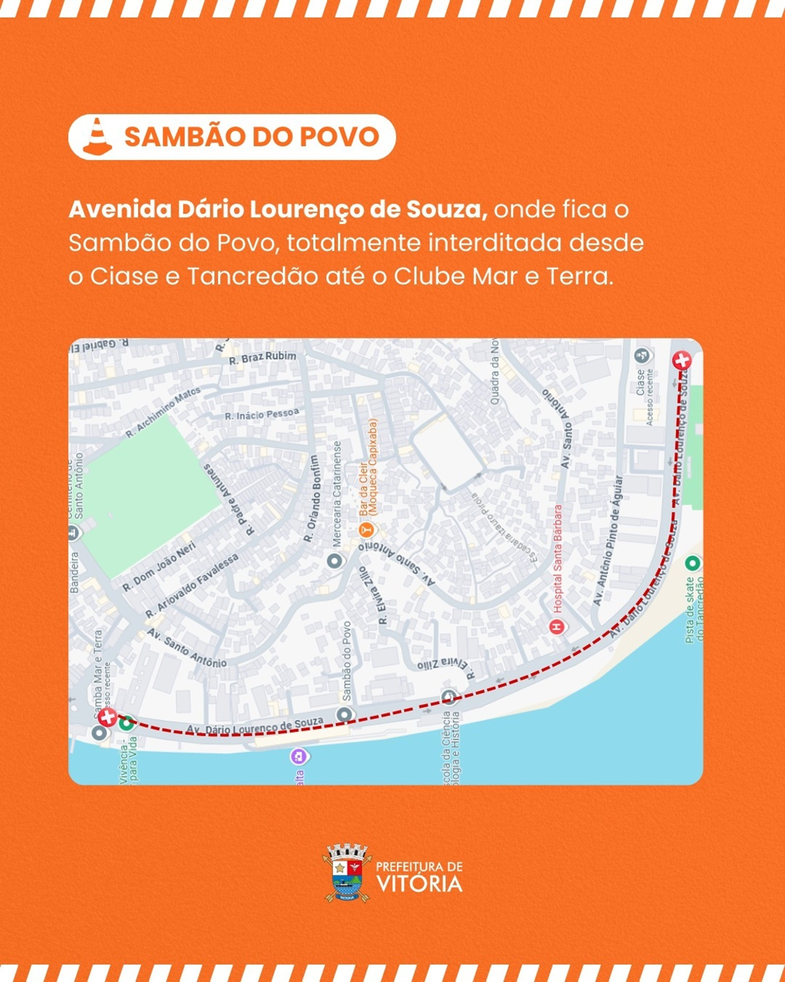 Vale lembrar que os moradores das ruas interditadas terão seus veículos identificados para terem acesso liberado. Todas as interdições serão acompanhadas por agentes da Guarda Civil Municipal de Vitória para dar fluidez ao trânsito na região.