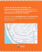 Também haverá interdição total da Rua Elvira Zílio (altura da Curva do Rabaioli), que dá acesso ao Sambão do Povo.