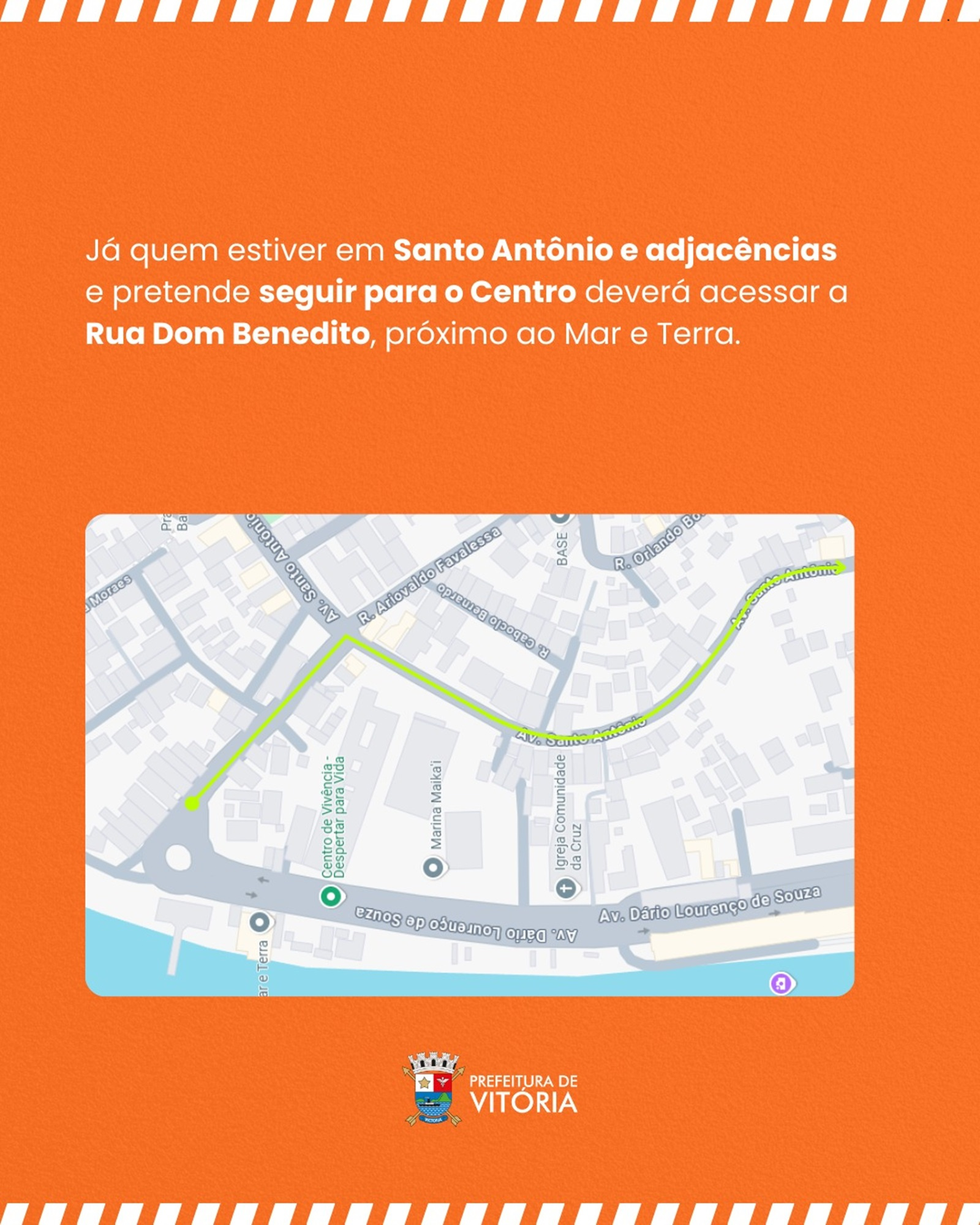 Já quem estiver em Santo Antônio e adjacências e pretende seguir para o Centro, o bloqueio será na rotatória, próximo ao Clube de Pesca Mar e Terra. Os condutores deverão acessar a Rua Dom Benedito, que também desemboca na Avenida Santo Antônio.