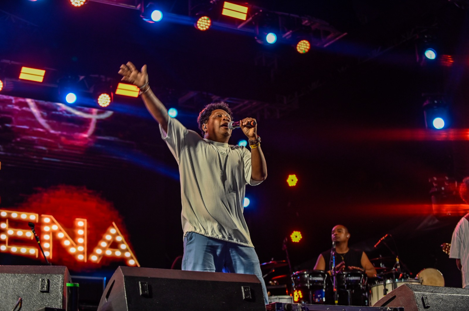 Na sequência, o carioca Suel assumiu o palco e transformou a Arena em uma grande resenha. Ex-vocalista e fundador do Imaginasamba, destaque nos anos 2000, o cantor apresentou músicas autorais e clássicos que influenciaram sua carreira. O clima descontraído, marca do projeto "Pôr do Suel" e o consolidado sucesso de "Clássicos" levaram o público a cantar em coro do início ao fim.