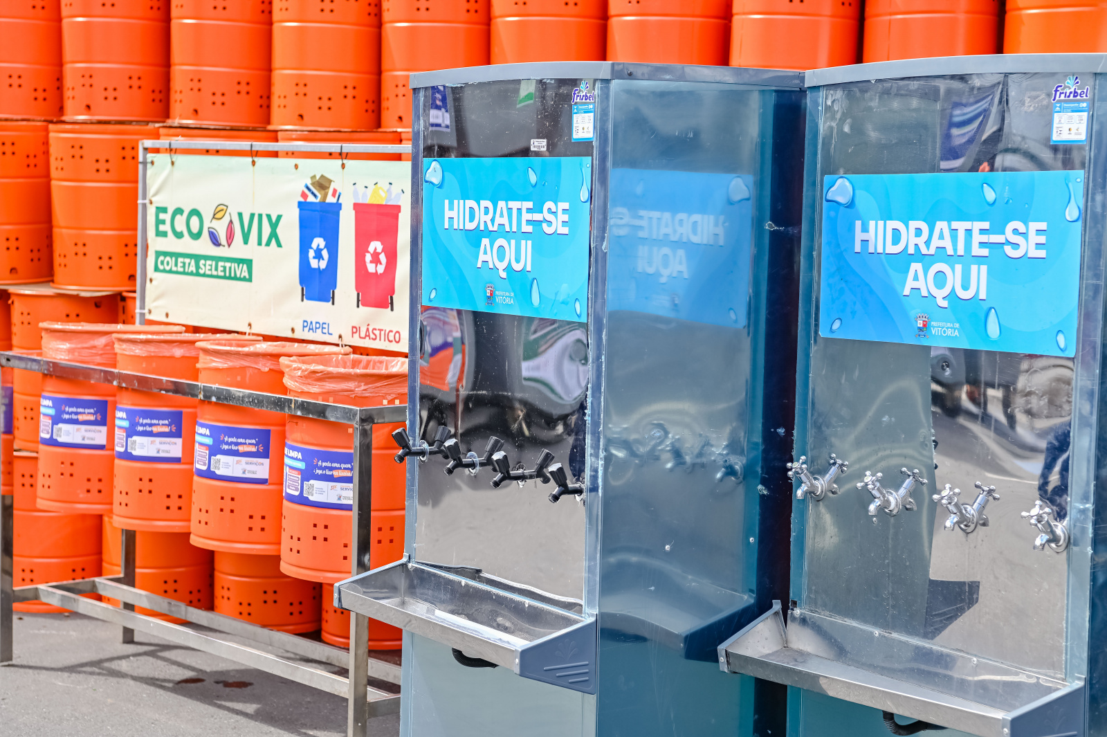 A água pode servir para refrescar o corpo, mas é ,também, a principal aliada na hidratação. Bebedouros estarão instalados em diversos pontos do trajeto da folia, como ao lado da Praça Getúlio Vargas, no Mercado da Capixaba, no Mucane e no Sambão do Povo. Mesmo durante a festa, é importante lembrar-se, sempre, de beber água e recuperar a hidratação do dia.