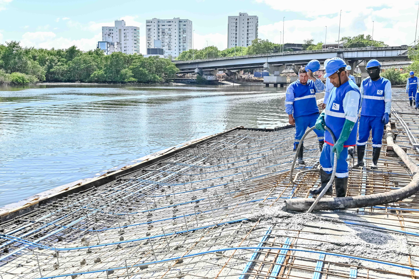 Mais uma etapa da concretagem dos deques da orla de Andorinhas foi iniciada nesta quarta-feira (22). Parte do Projeto Vitória de Frente para o Mar, o espaço conta com 650 metros de deques com arquibancadas alagáveis, iniciando nas proximidades da rua Benigno Antônio Ventura até o início da Av. Leitão da Silva, na altura da Escola Municipal de Ensino Fundamental (Emef) Izaura Marques da Silva.