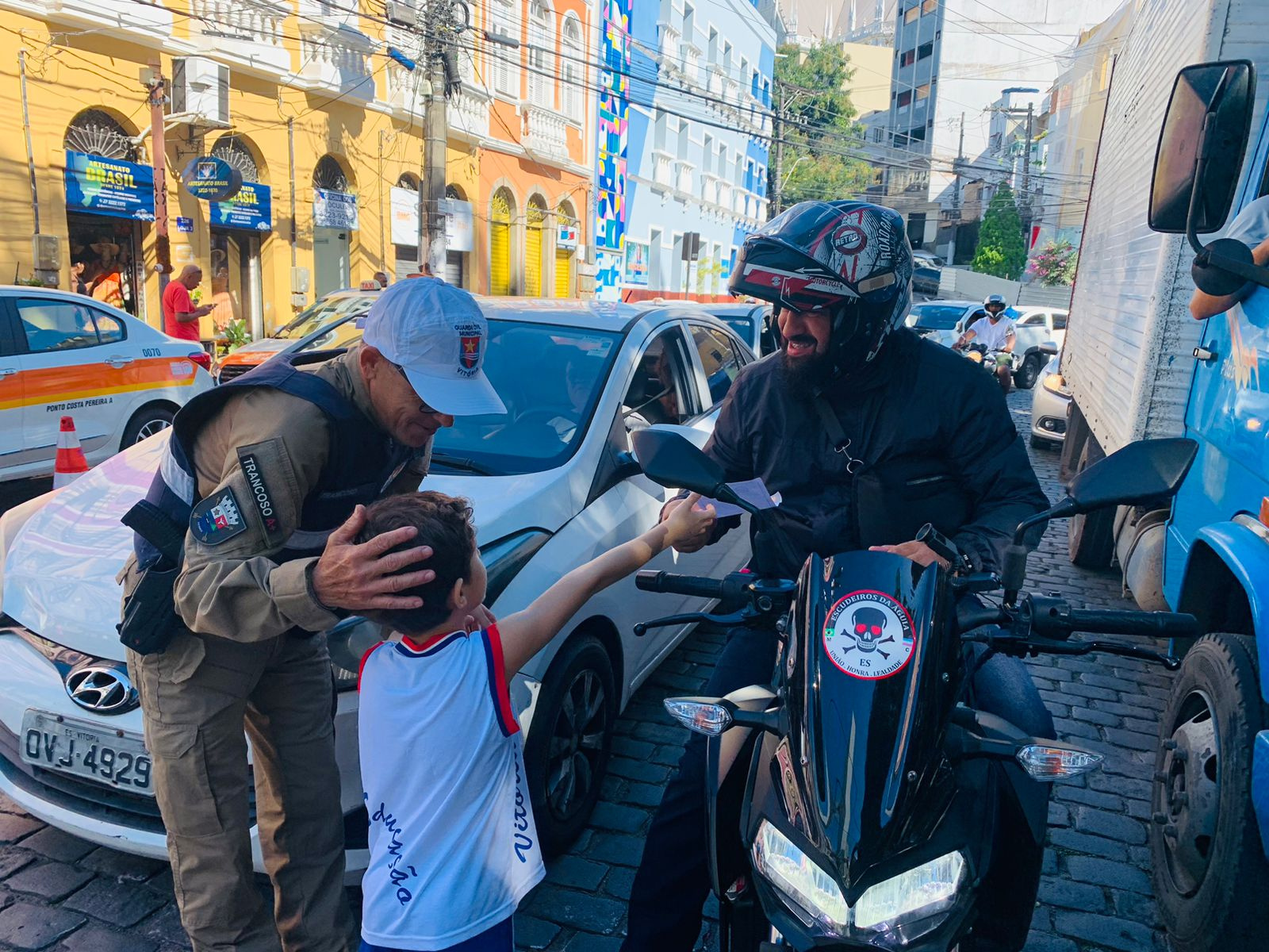 Com o objetivo de promover a educação no trânsito e a preservação de vidas, cerca de 35 crianças do Centro Municipal de Educação Infantil em Tempo Integral (Cmei TI) Menino Jesus, que fica no Centro, participaram de uma ação em parceria com a Guarda Civil Municipal de Vitória (GCMV), em que foram abordados mais de 50 veículos.