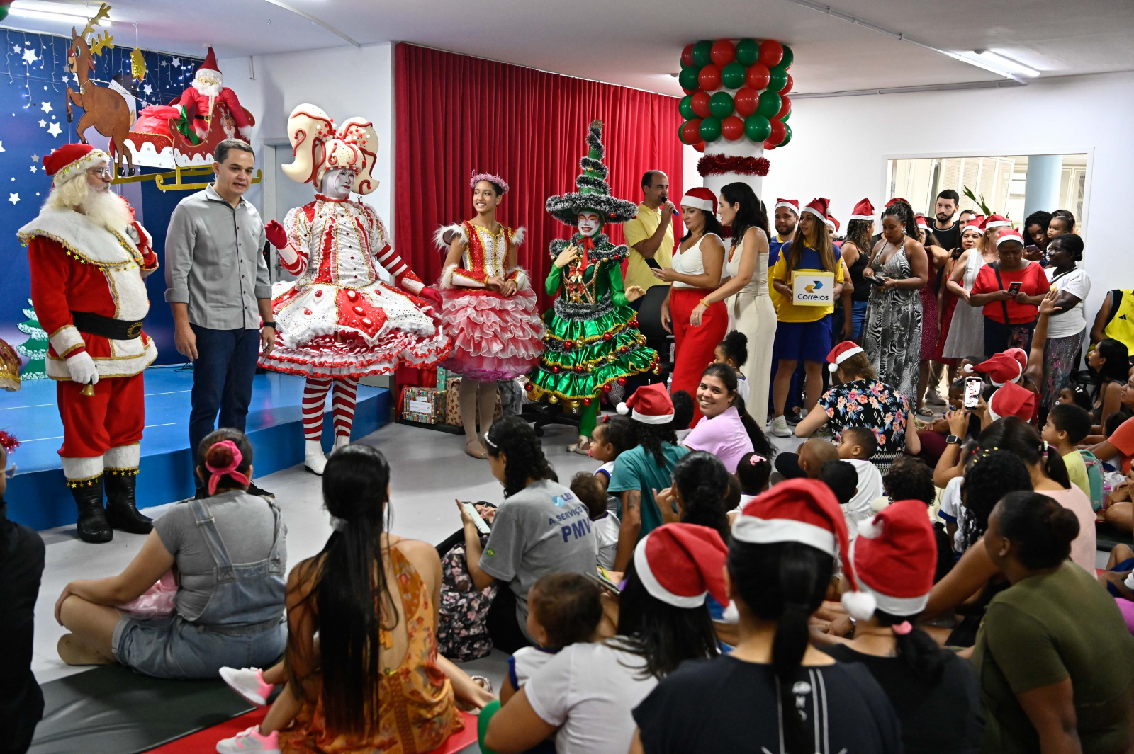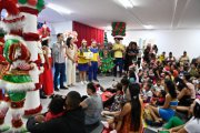 Crianças recebem presentes do Papai Noel dos Correios no Cmei Rubens Duarte de Albuquerque