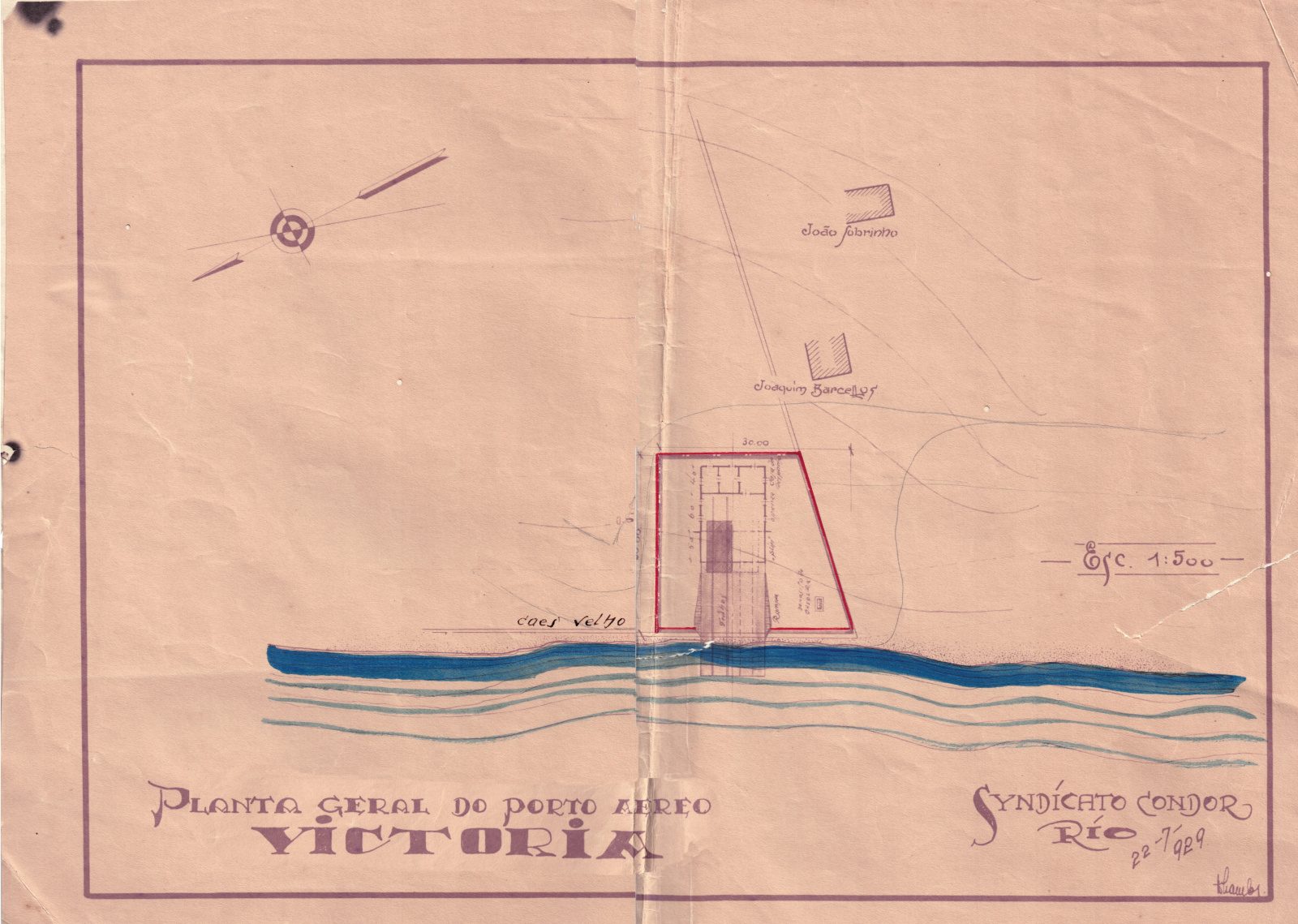 Em 1º de agosto de 1929, a Condor Syndikat faz uma 'descripção technica' do futuro Aeroporto de Victoria, indicando a 'installação' em um terreno de 30x30m em Santo Antônio. O relatório diz: