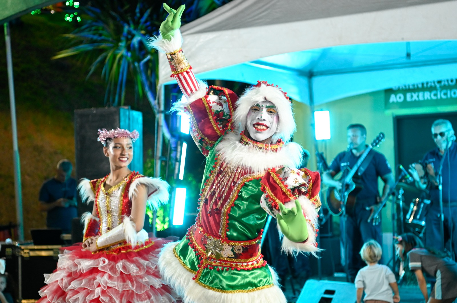 A noite também contou com atrações encantadoras. Além da neve caindo, que sempre é um sucesso com a criançada, a banda da Guarda Municipal emocionou o público com sua apresentação, enquanto personagens temáticos desenvolviam performances. A banda fanfarra também interagiu com as famílias, arrancando sorrisos e olhares de admiração das crianças.