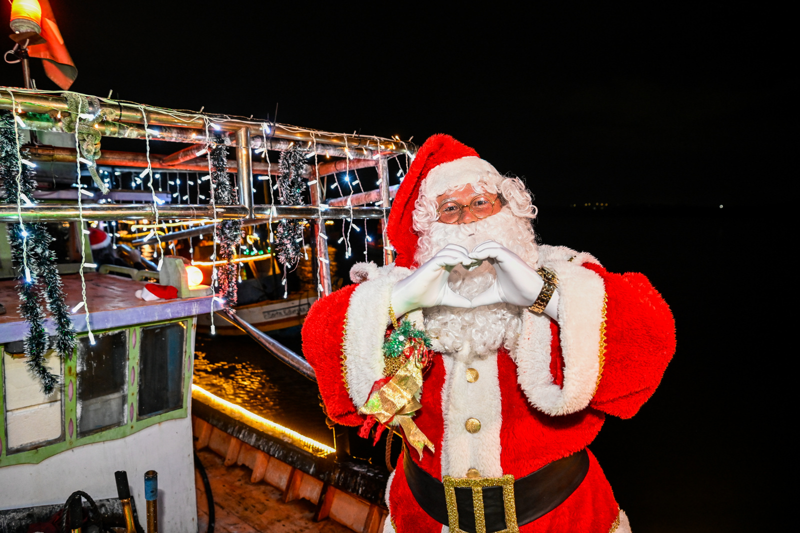 Esse ano, a Novidade foi a chegada do Papai Noel de barco. Quando a embarcação, cedida pelos pescadores da região, que trazia o bom velhinho surgiu, navegando pelas águas, as crianças acenaram e chamavam pelo bom velhinho.