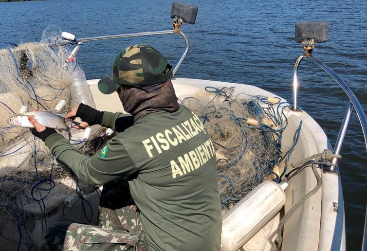 Equipe de Fiscalização Ambiental apreendeu rede ilegal de pesca durante operação no sábado (ampliar)