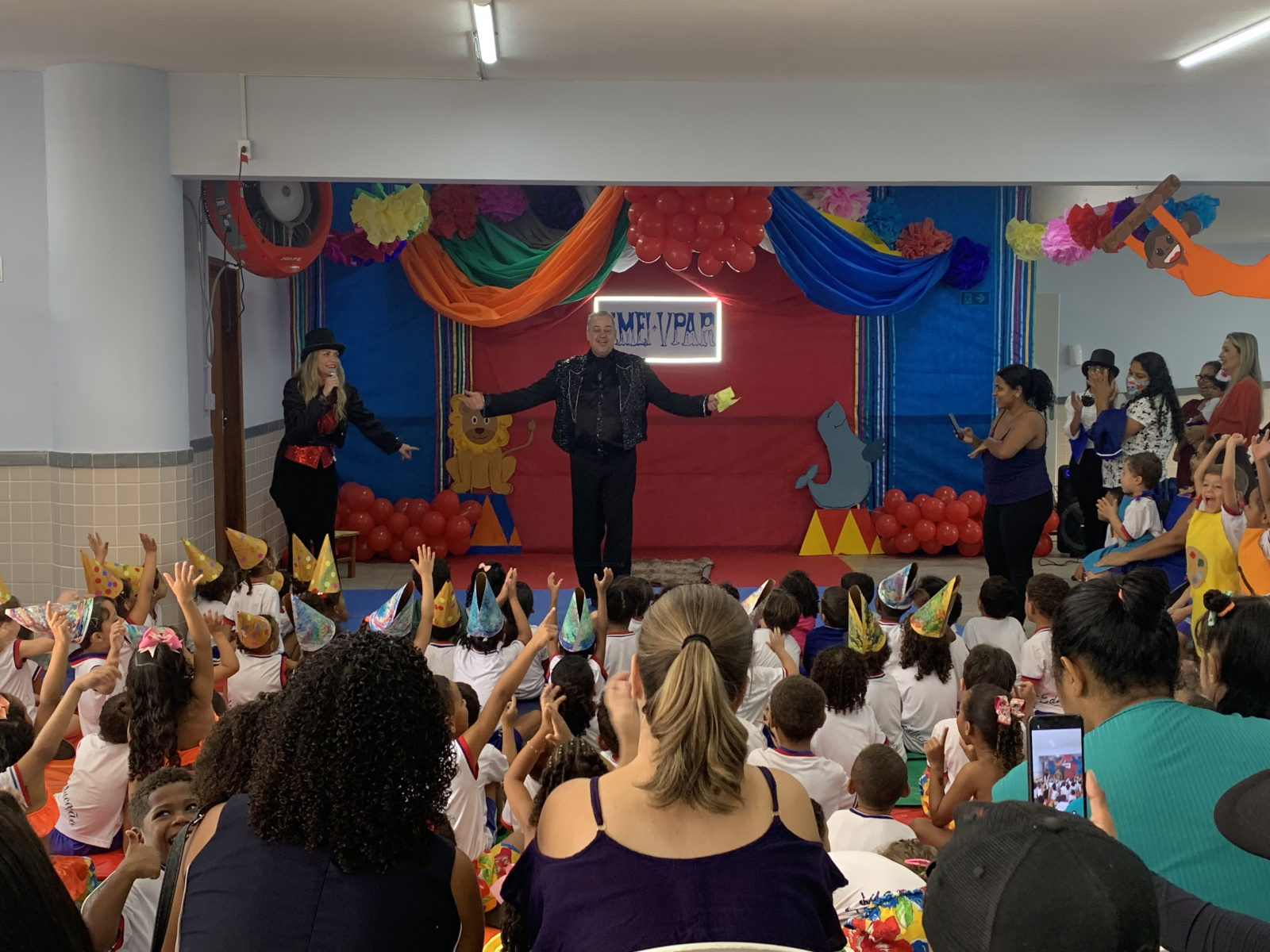 Teve apresentação do mágico Sérgio, que envolveu as crianças com uma performance cheia de brincadeiras, adivinhação e dinâmicas interativas. Já os professores dinamizadores da escola encantaram a todos numa releitura musical da clássica peça teatral "Os Saltimbancos", com direito a figurino e acrobacias.
