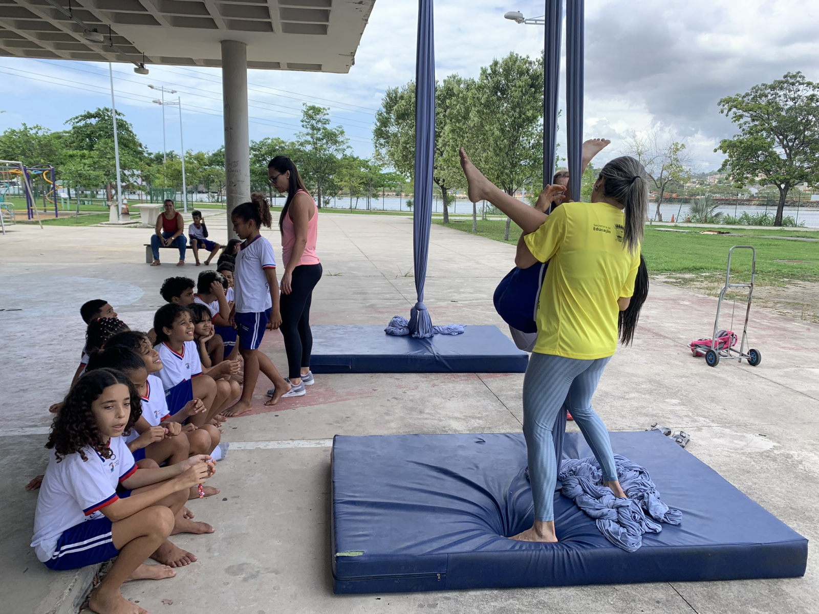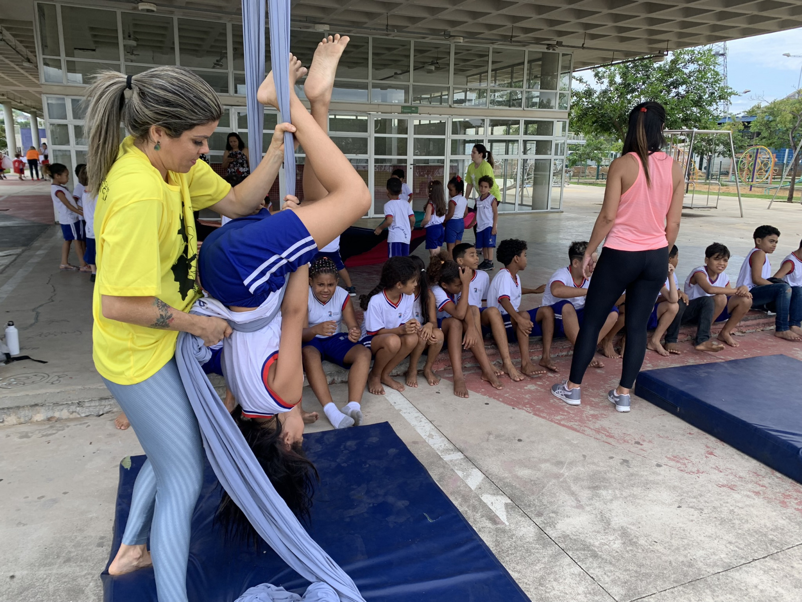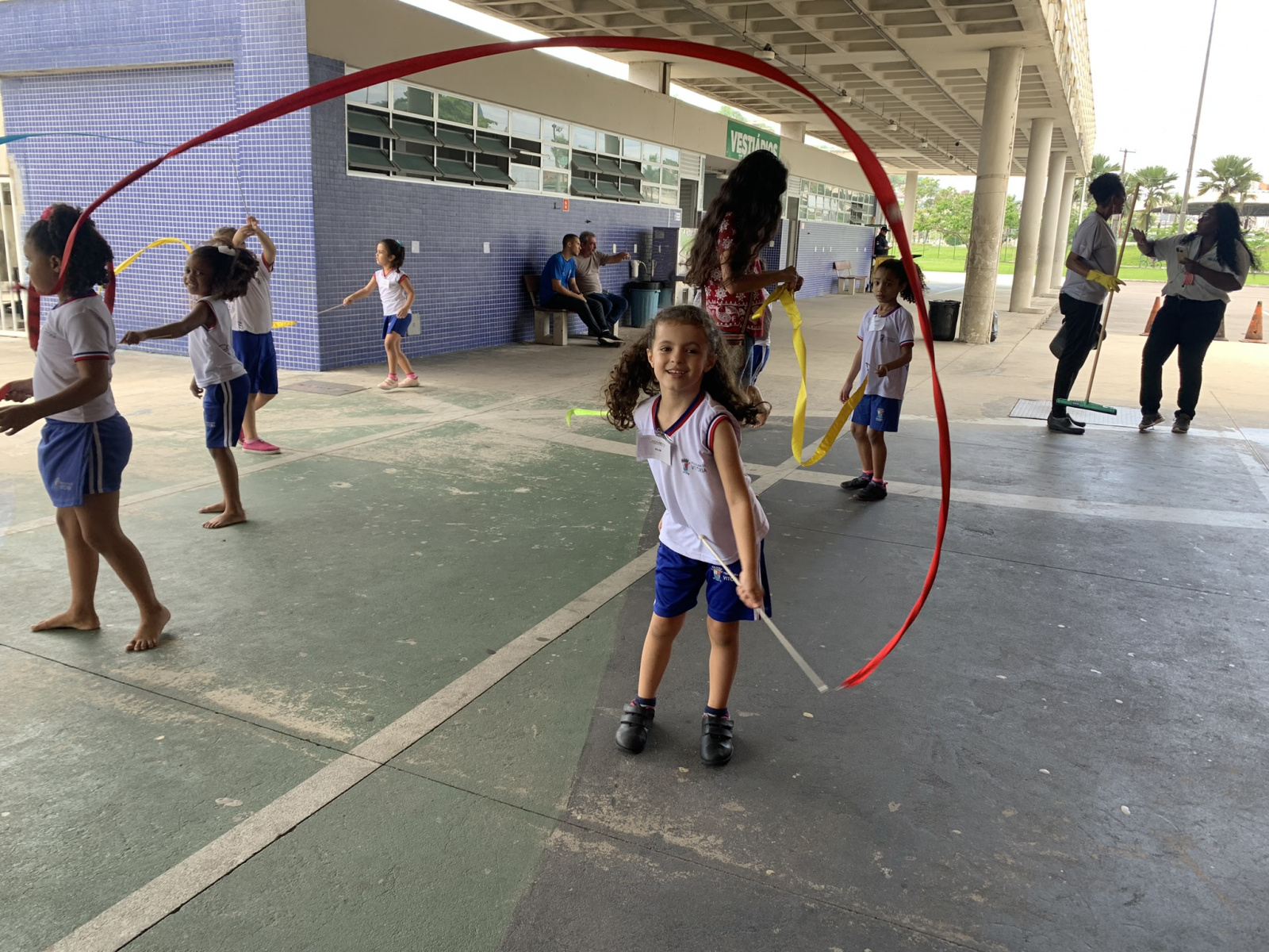 A ação faz parte do VIII Festival de Linguagens Integradas, realizado pela Secretaria de Educação de Vitória (Seme). São mais de 700 crianças e estudantes divididas em grupos e frequentando, em revezamento, oficinas de expressões culturais e artísticas, de movimentos corporais e esportes radicais, individuais e coletivos, com duração de 40 minutos.