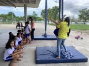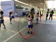Já as pequenas Maria Júlia, Maria Amora e o pequeno Kayque Lima, do grupo 6 do Centro Municipal de Educação Infantil em Tempo Integral (Cmei TI) Menino Jesus, que fica no Centro, mostraram muita desenvoltura na oficina de ginástica.