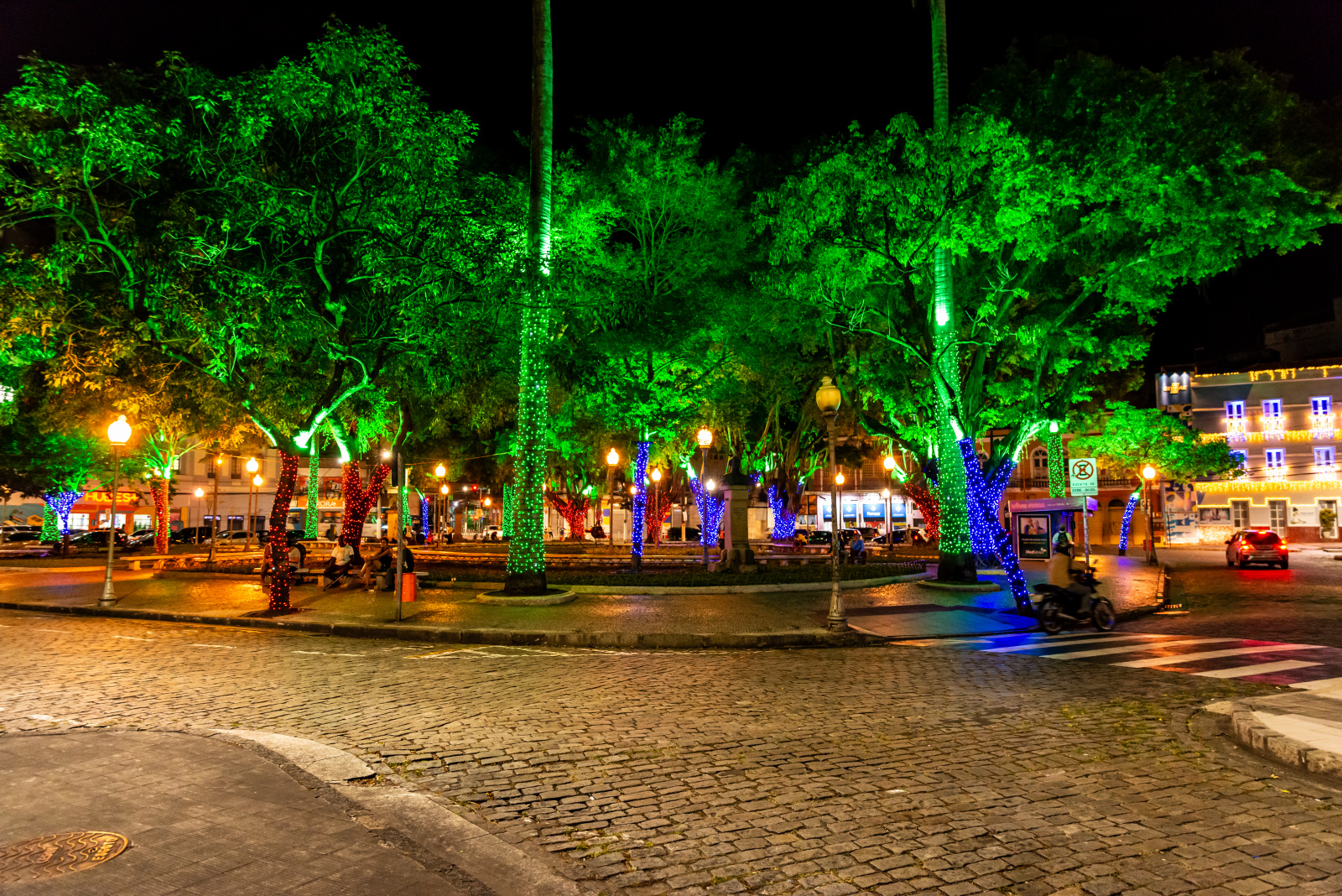 Tradicional referência no Centro, na Rua 7 de Setembro foram instaladas luminárias pingente, microlâmpadas e cascatas de led. Parte da iluminação provisória que for feita ali se tornará permanente na rua.