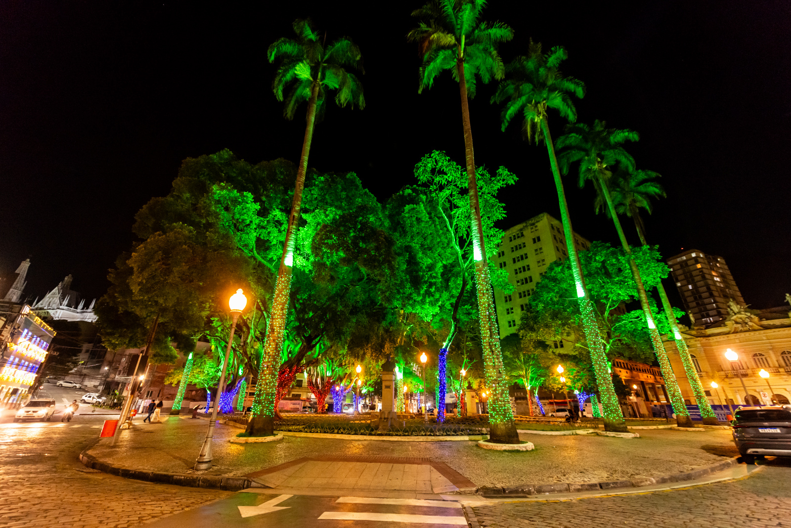 A Praça do Papa, em Vitória, se transformou em um verdadeiro espetáculo de luzes e encanto. A iluminação especial e a ornamentação das árvores naturais deram vida à praça, criando um cenário de cores e brilho que encantou os munícipes.