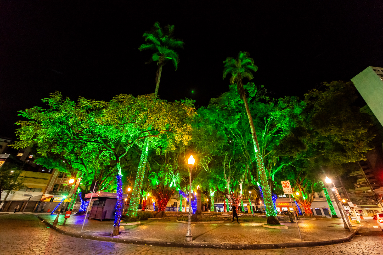 Um espetáculo com muito encanto e entretenimento. Assim foi na Praça Therezinha Grecchi, no bairro República, que recebeu a inauguração da decoração natalina, com a garantia de muita alegria para a população, na noite desta quarta-feira (07). A iluminação especial, as brincadeiras e a ornamentação das árvores naturais deixaram o local ainda mais belo.