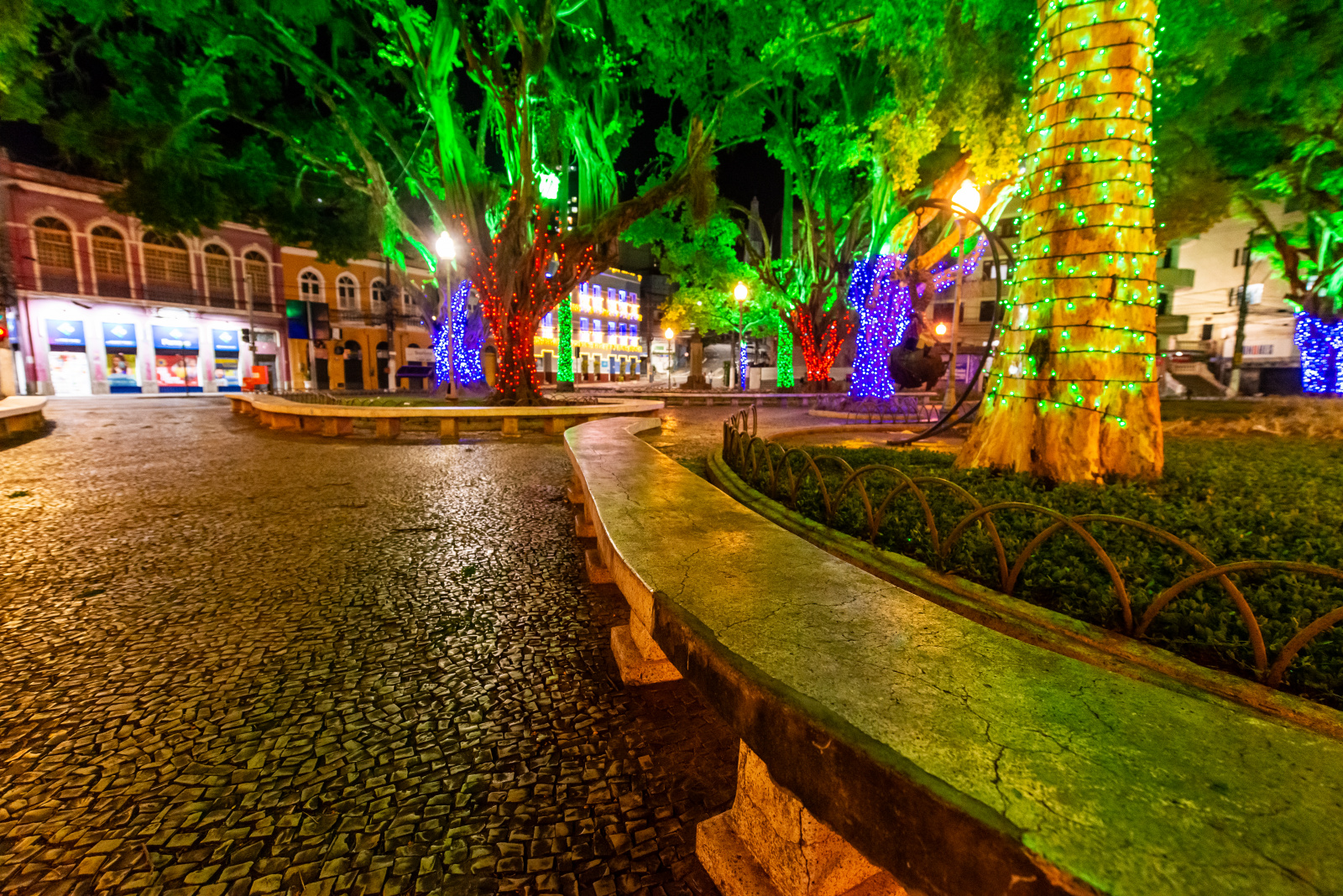 A praça Stella Vieira Loureiro Coimbra foi enfeitada com uma árvore natalina de 10 metros, toda iluminada. As árvores naturais do local também receberam uma linda iluminação que garantem o brilho próprio da época.
