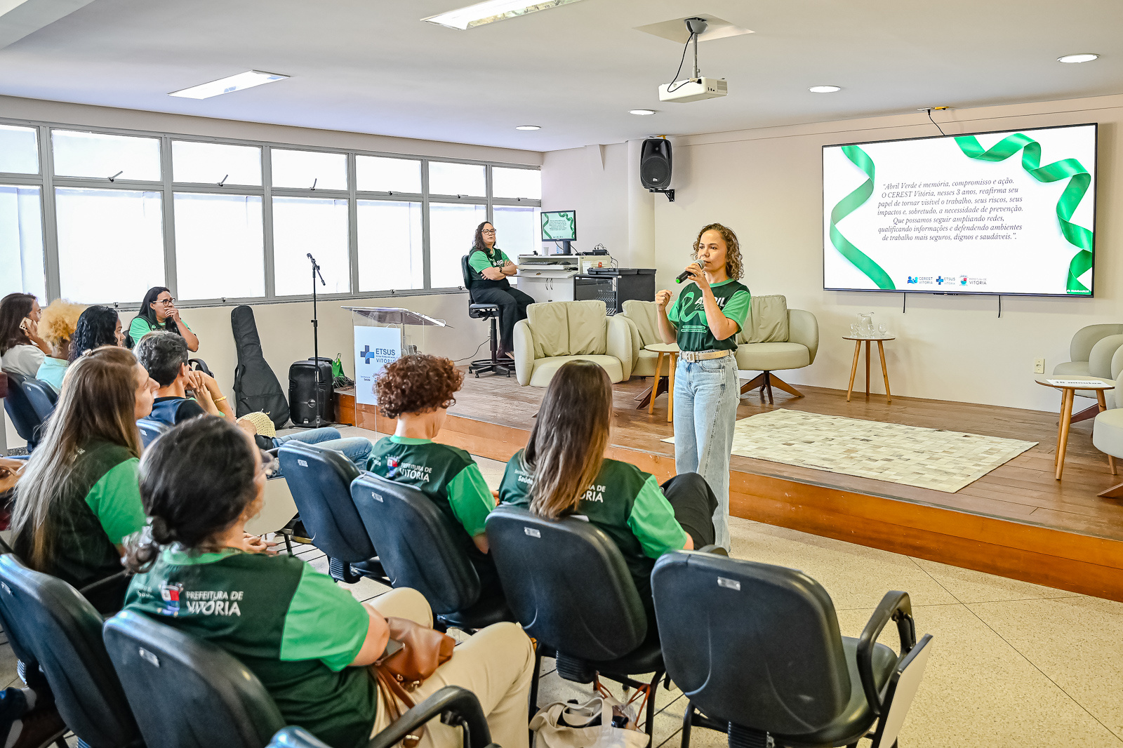 Vitória (Semus) realizou, na tarde desta terça-feira (28), o II Seminário em Saúde do Trabalhador: Tornando Visível o Trabalho e Seus Impactos na Saúde. O encontro, que reuniu aproximadamente 80 pessoas, ocorreu na Escola Técnica do SUS (ETSUS-Vitória) como parte das ações do Abril Verde, mês dedicado à conscientização nacional sobre segurança e saúde no ambiente laboral.