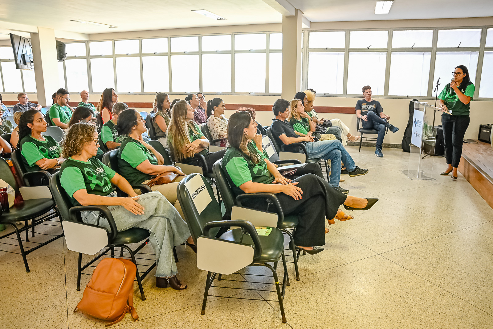 O evento foi conduzido pela coordenadora de Vigilância Epidemiológica, Tatiane Comério, e em sua abertura contou com uma apresentação de clássicos da MPB, interpretados pelo diretor do Centro de Atenção Psicossocial (Caps) da Ilha de Santa Maria, Luiz Cláudio Oliveira.